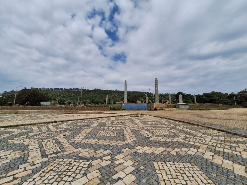 Im Hintergrund die berühmten über Tausend Jahre alten Obelisken in Axum-Tigray (axumitische Hochkultur) / Foto: LMaat e.V.